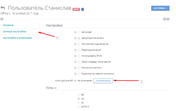 *ключ API создается в настройках Вашего пользователя, как показано в первом пункте документации
