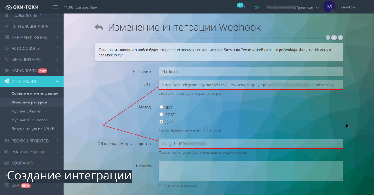 - Чтобы отправить сообщение в конкретную группу Telegram, нужно указать ID группы в поле «Общие параметры запроса» в виде: chat_id=IDгруппы.