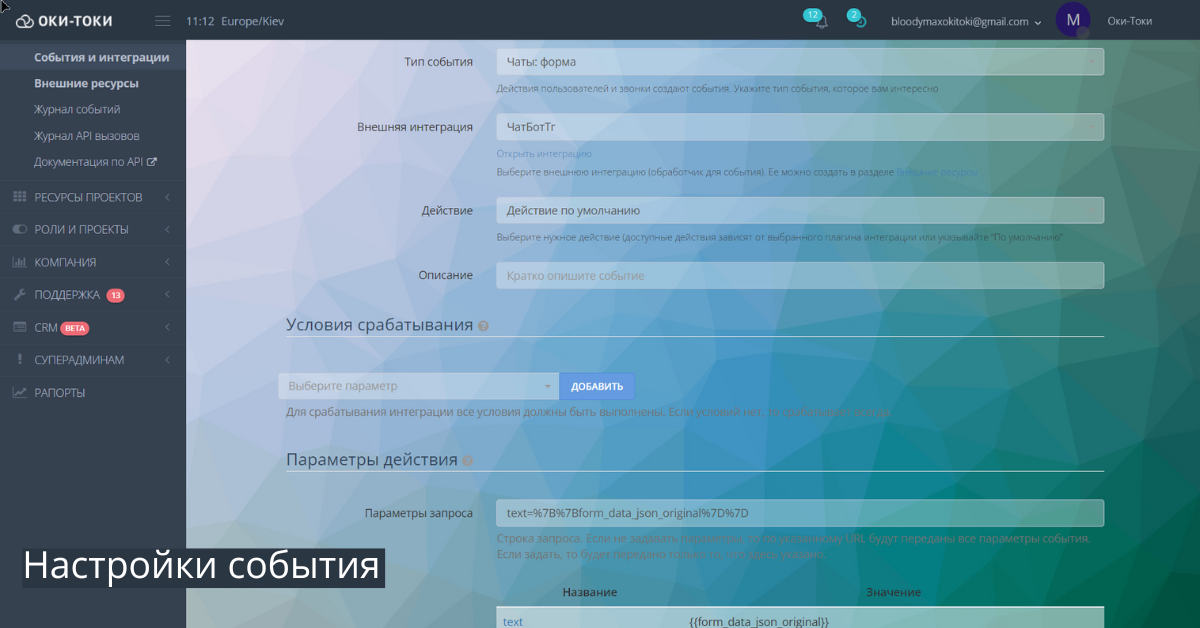 - Далее настройте при каких условиях событие будет срабатывать, например при успешном соединении с клиентом;